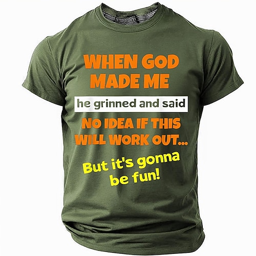 Maglietta da uomo Quando Dio mi ha creato ha firmato e ha detto Sarà divertente T shirt Stampa 3D Maglietta a collo rotondo Moda Quotidiana Stile Stradale Nera Blu Verde Estate Primavera Abbigliamento