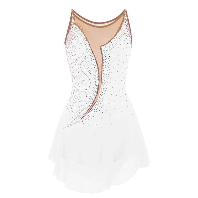 Figure Skating Dress Women's Girls' Ice Skating Dress White Yellow Pink Asymmetric Hem Mesh Spandex High Elasticity Practice Professional Competition Skating Wear Anatomic Design Classic Crystal