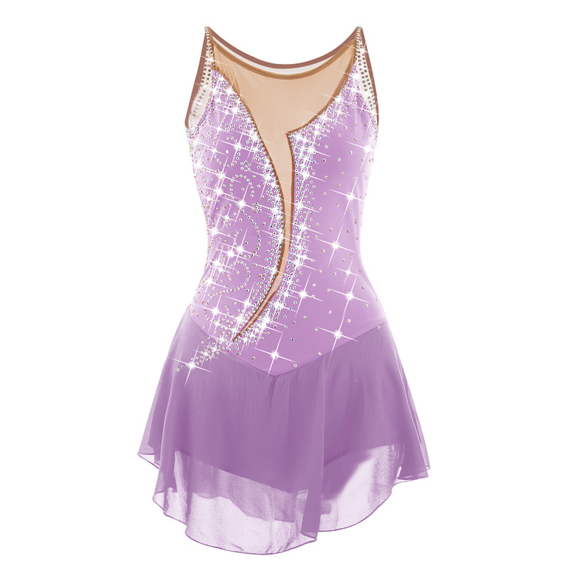 Figure Skating Dress Women's Girls' Ice Skating Dress Light Purple Patchwork Open Back Mesh Spandex High Elasticity Training Competition Skating Wear Classic Crystal / Rhinestone Sleeveless Ice