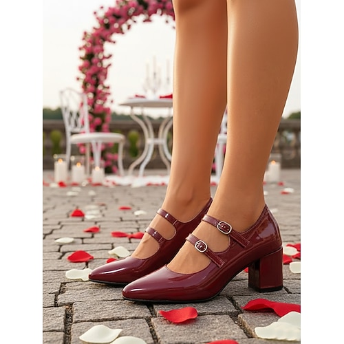 décolleté vintage da donna in similpelle bordeaux anni '50: eleganti décolleté mary jane con fibbia regolabile per eventi formali, feste e uso quotidiano