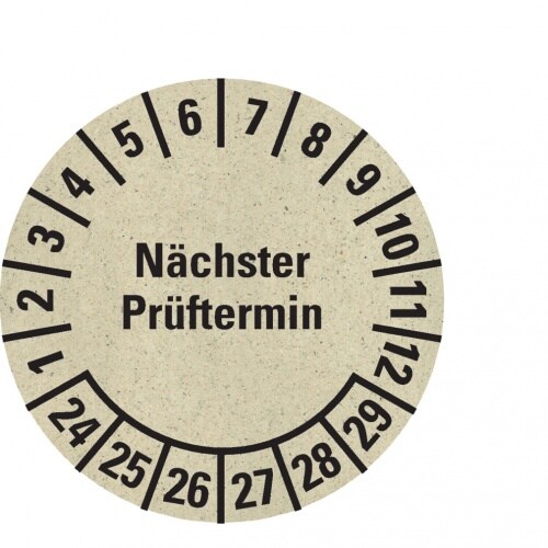 Dreifke® Prüfplakette Nächster Prüftermin 24-29, natur, Graspapier, Ø 30mm, 500 Stk.
