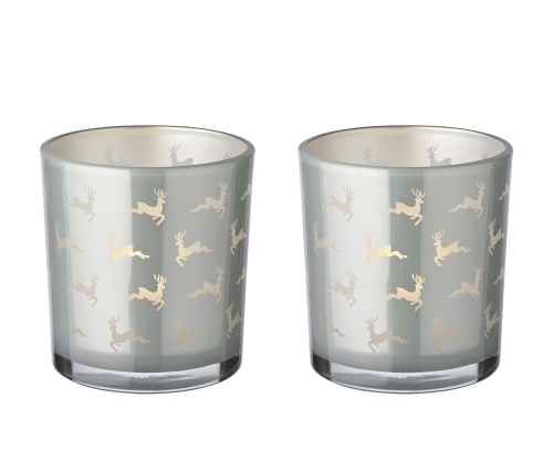 EDZARD 2er-Set Teelichtglas Hiti (Höhe 8 cm), grau, Rentier-Motiv