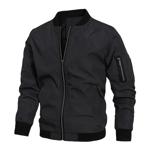 Per uomo Giubbotto bomber Giacca di transizione Uscire Tasca Tutte le stagioni Semplice Classico Collo alla coreana Regolare Nero Blu marino Grigio Giacca