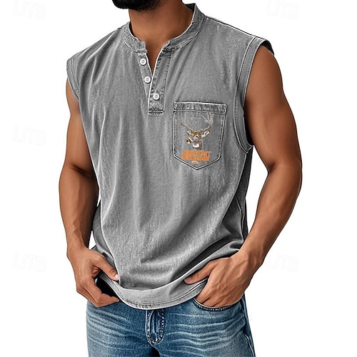 Per uomo Maglietta smanicata Canottiera Maglietta senza maniche Senza Maniche Henley Tutte le stagioni Renna Cervo Moda Designer Tasca Vacanza Streetwear Uscire Nero Rosa Blu marino scuro Maglietta