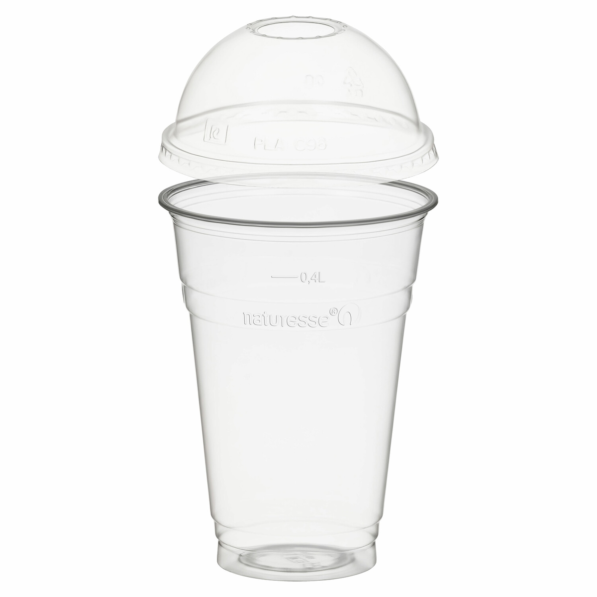 VEPATIM 50x BIO Trinkbecher 400ml + Domdeckel mit Rundloch aus Biokunststoff (PLA)