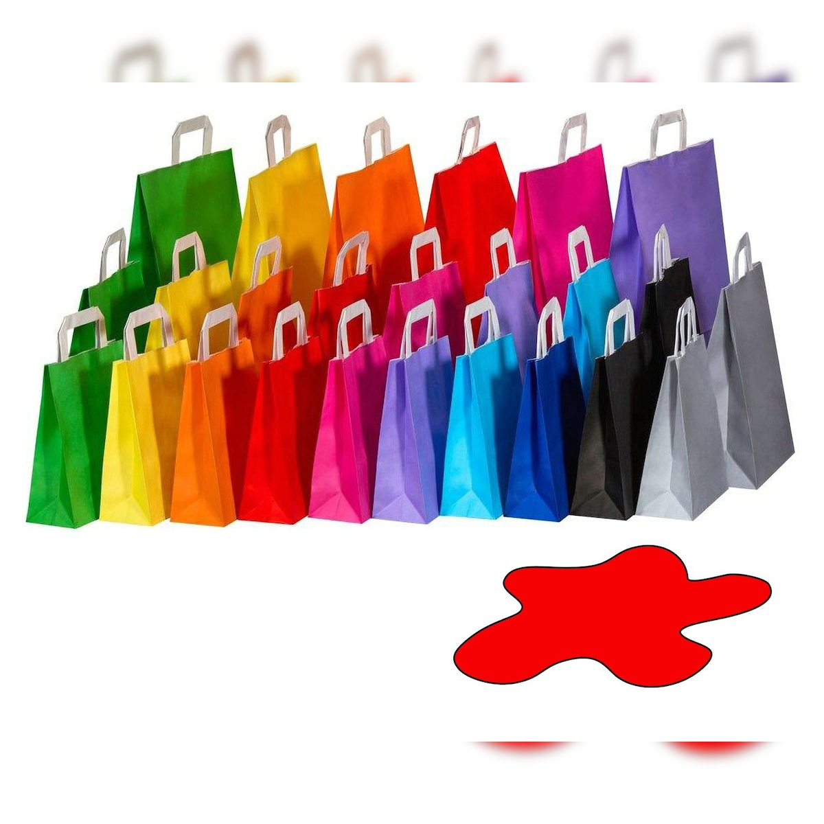 VEPATIM 250x Papiertragetaschen Papiertaschen Flachhenkel 22x10x28cm rot 70gr.