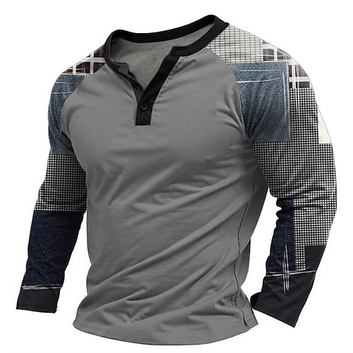 Per uomo Grafico Patchwork Maglietta Maglia Henley Manica Lunga Designer Essenziale Classico All'aperto Quotidiano Sportivo Primavera Autunno Nero Grigio chiaro Grigio scuro Henley Maglietta Henley