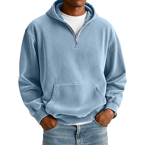Per uomo Felpa con cappuccio Maglione Felpa con cappuccio e zip corta Blu Nero Verde chiaro Rosa Verde militare Con Cappuccio Semplice Tasca a marsupio Casuale Quotidiano Sport Outdoor Vintage Cool