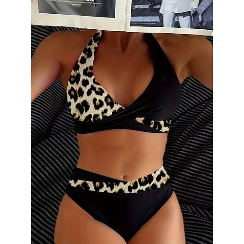 Woman's Bikini 2-teiliger Badeanzug Leopard Mode Stylisch Grafisch Ärmlos Badeanzüge