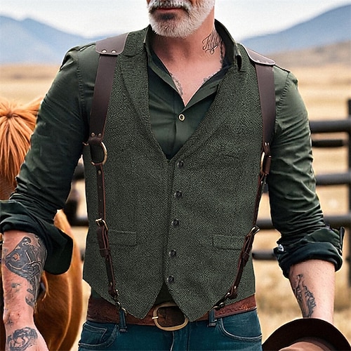 Per uomo Gilet Vacanza Feste Affari Moda Casual Primavera Autunno Tasca Bottoni Poliestere Confortevole Semplice Monopetto Un Bottone Bavero Vestibilità regolare Caffè Marrone Nero Verde Grigio