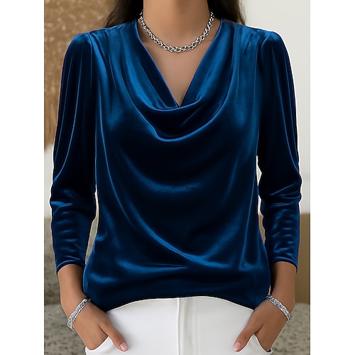camicia da donna in velluto natalizio vintage per feste festività semi formale abbigliamento formale nero vino blu viola verde autunno inverno