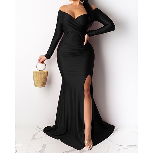 Per donna Abito Lungo Maxi Abito Abito nero Abito da Ballo Vestito da Festa Elegante Moderno Festa serale Feste Occasione speciale Vestibilità regolare Semplice Manica Lunga Scollo a V Blu Nero Rosso