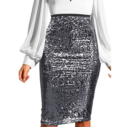 Per donna Gonna Aderente Elegante Moda Lunghezza al ginocchio Vita Alta Gonne Semplice Paillettes Micro-elastico Feste Streetwear Vinaccia Nero Verde scuro Grigio scuro Primavera Poliestere