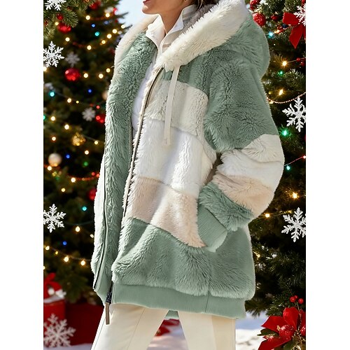 Per donna Giacca in Pile Cappotto Teddy Giacca con Cappuccio Caldo Traspirante Cerniera Tasca Foderato in pile Casual A righe Vacanza Streetwear Abbigliamento quotidiano Uscire Cerniera Regolare