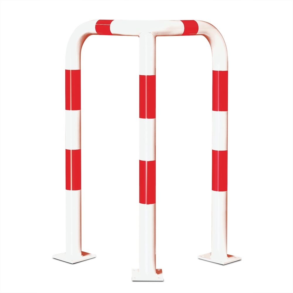 PROREGAL Eck-Rammschutz-Bügel | HxBxT 120x60x60cm | Rohr-Ø 7,6cm | Kunststoffbeschichteter Stahl | Rot-Weiß
