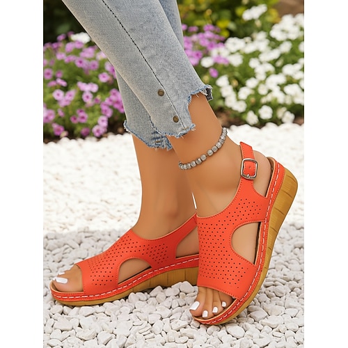 sandali con zeppa slip-on da donna con design ritagliato, scarpe estive ortopediche comode e casual per passeggiate quotidiane, spiaggia e giardino