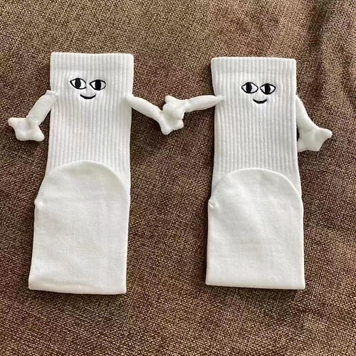 calzini magnetici edizione invernale, calzini natalizi, calze rosse natalizie con motivo a sciarpa, calzini magnetici decorativi con grandi occhi da tenere in mano, decorazioni festive per Natale e Halloween
