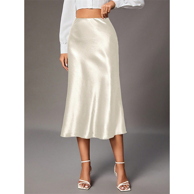 Women's Satin Skirts Elegant Vintage Fashion Midi High Waist Skirts Plain Ruched Patchwork Inelastic Daily Party Wine Almond Pink Army Green Summer Spandex Satin