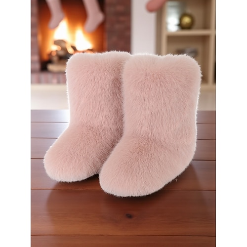 Per donna Stivali Stivali da Neve All'aperto Quotidiano Tinta unica Foderato in Pile Tronchetti Tacco basso Punta Tonda Casual Comfort Pelliccia Sintetica Cerniera Nero Bianco Rosa