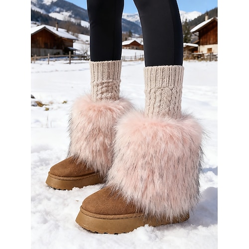 Per donna Stivali Stivali da Neve Quotidiano All'aperto Tronchetti Tacco basso Punta Tonda Moda Pelliccia Pelliccia Sintetica Mocassino Nero Bianco Marrone