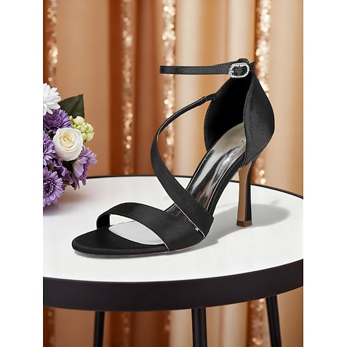 sandali da donna con tacco alto in raso viola e fibbia di strass eleganti tacchi a spillo con cinturino alla caviglia e punta aperta per cocktail party eventi serali
