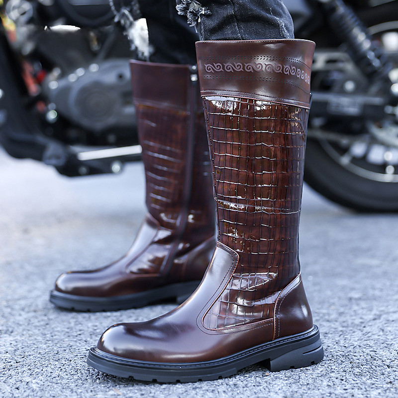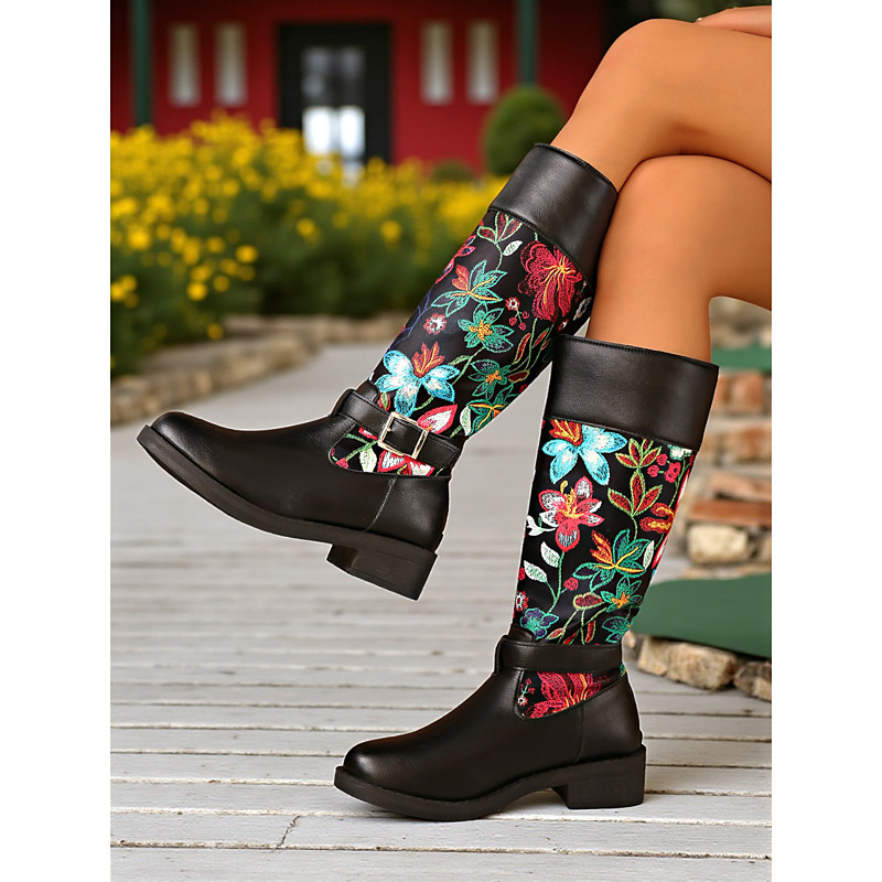 Women's Genuine Leather Knee High Riding Boots -Urban Fashion Square Toe Block Heel Equestrian Style Boots for Casual Chic Outfits