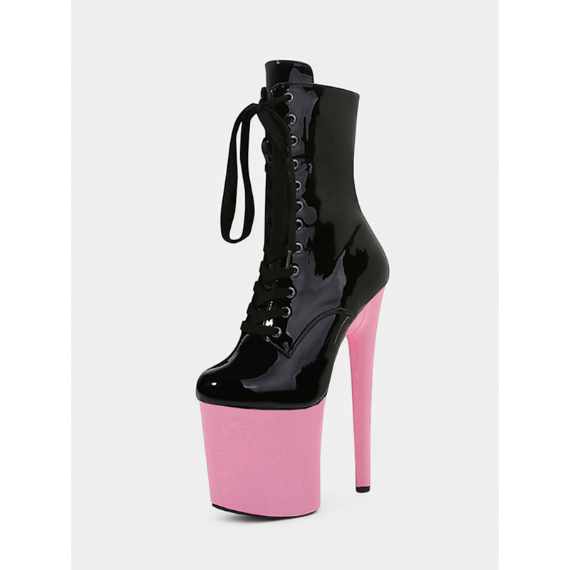 Women's Red Patent Leather Lace-Up Platform Ankle Boots - Sexy High Stiletto Heel Stage Boots for Performers, Nightclubs Festival Outfits