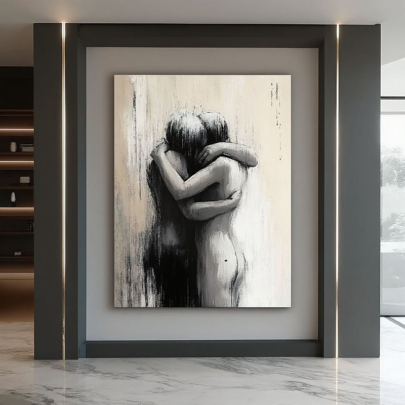Abstract Faceless Woman and Man Portrait Oil Painting Man and Woman Hug Oil Painting Couple Wall Art Lovers' Decor Wall Art Wabi-sabi Art
