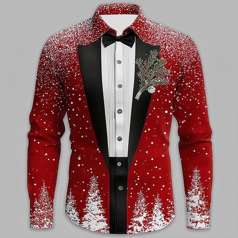 Christmas Men's Christmas Costume Suit Tie Printed Tuxedo Shirt Button Up Shirt Long Sleeve Funny Outdoor Holiday Spring Fall Turndown 3D Print Collared Shirts Red 1 Red