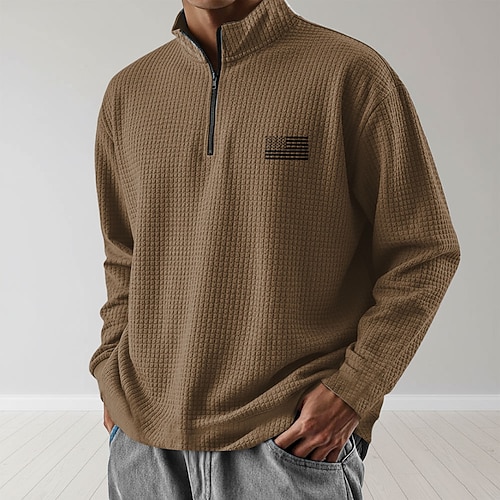 Per uomo Bandiera Americana Felpa Moda Quotidiano Classico Casual Collo alla coreana Zip a un quarto All'aperto Casa Ufficio Lavoro Nero Blu Marrone Verde Grigio Con zip Autunno Inverno progettista S