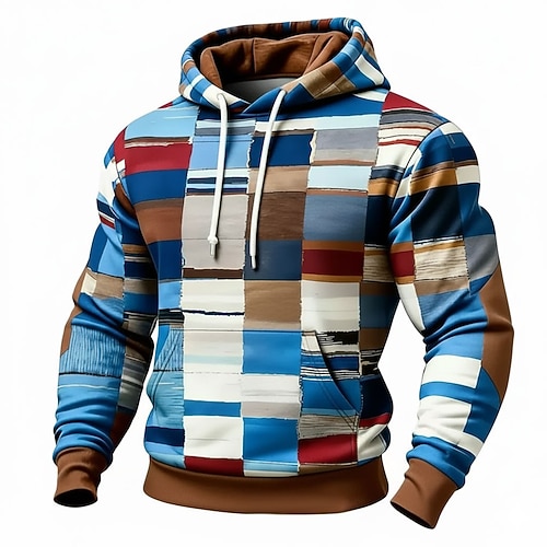 Per uomo Geometrico Plaid Felpa con Cappuccio Felpa Moda Quotidiano Girocollo Casa Abbigliamento casual alla moda Feste Blu Marrone Verde Grigio Coulisse Autunno Inverno progettista S M L XL XXL XXXL