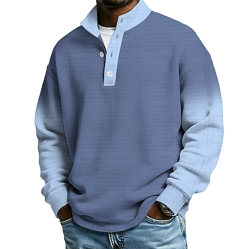 Per uomo Blocco di colori Gradiente di Colore Nido d'ape Felpa Moda Quotidiano Casual Collo Alto Casa All'aperto Abbigliamento casual alla moda Ufficio Blu Verde Blu scuro Grigio Bottoni Autunno