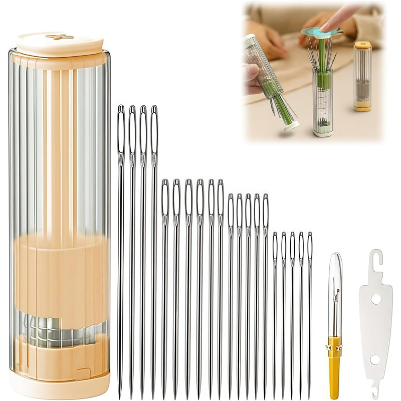Magnetic Needle Box 23pcs Portable Sewing Storage Case Kit Including 20 Needles,1pc Magnetic Storage Box,1pc Threading Aid,1pc Seam Ripper Multi-Purpose Large-Eye Stitching Needle and Thread Kit