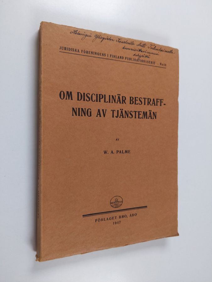 Walter Armas Palme : Om disciplinär bestraffning av tjänstemän - dess materiellträttsliga förutsättningar enligt gällande förvaltningsrätt i Finland