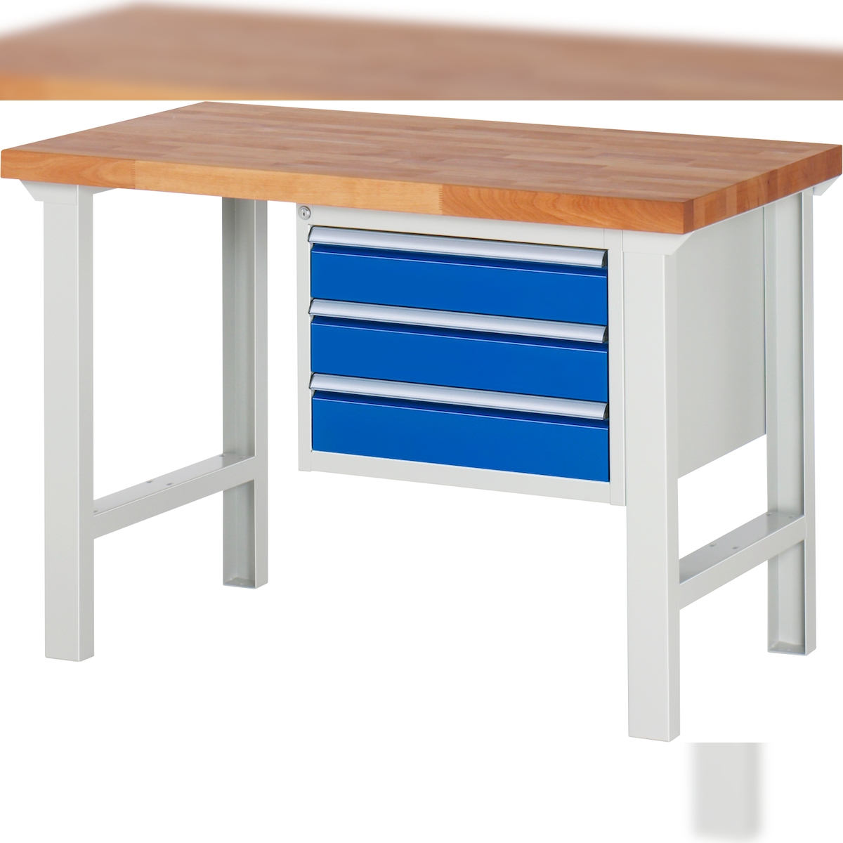 PROREGAL Werkbank Serie 7000 - Modell 7127 | HxBxT 84x125x70cm | 3x Schublade | Schubladenmaße 3x120mm | Lichtgrau | Arbeitstisch Werktisch
