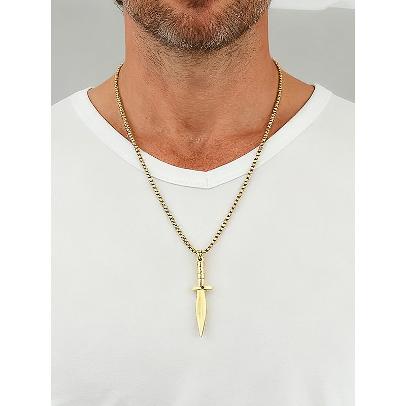 Men's Titanium Steel Dagger Pendant Necklace – Gothic Punk Knife Chain Jewelry for Halloween Party, Cosplay and Everyday Fashion