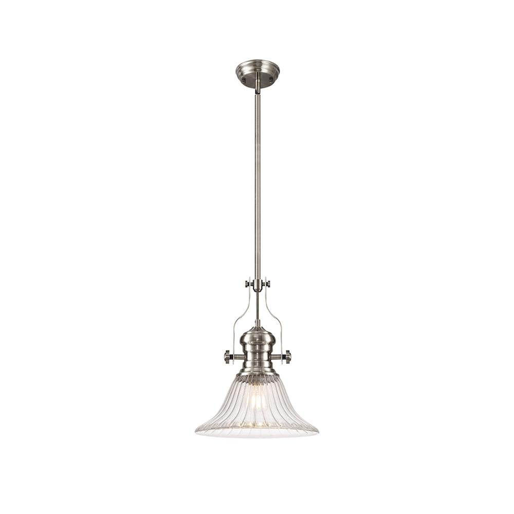 Serena Single Pendant Light E27 30cm Bell Glass Satin Nickel / Clear Luxuria