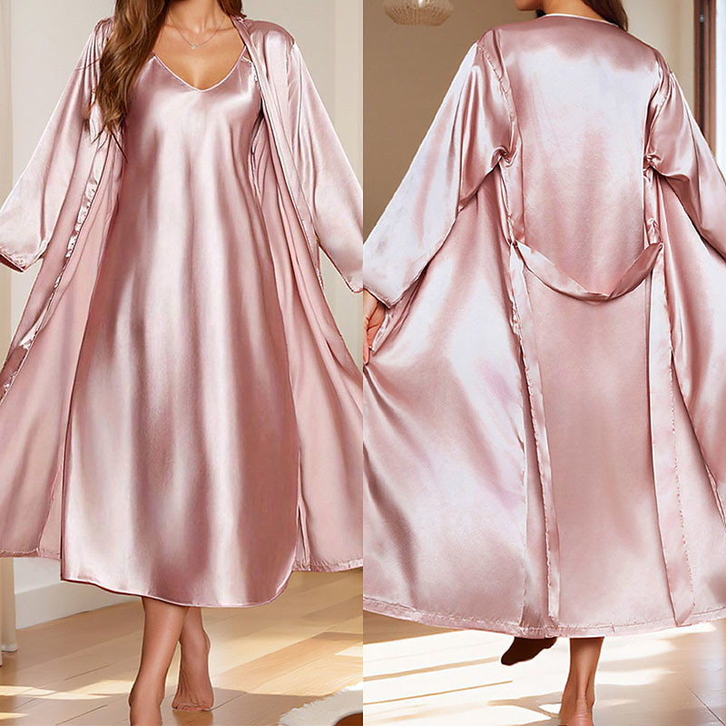 Women's Loungewear Robe Nightgown Fashion Casual Soft Pure Color Patchwork Dress Home Vacation Long Sleeve V Neck Black Champagne Pink Wine Green Summer Spring Fall Regular Fit