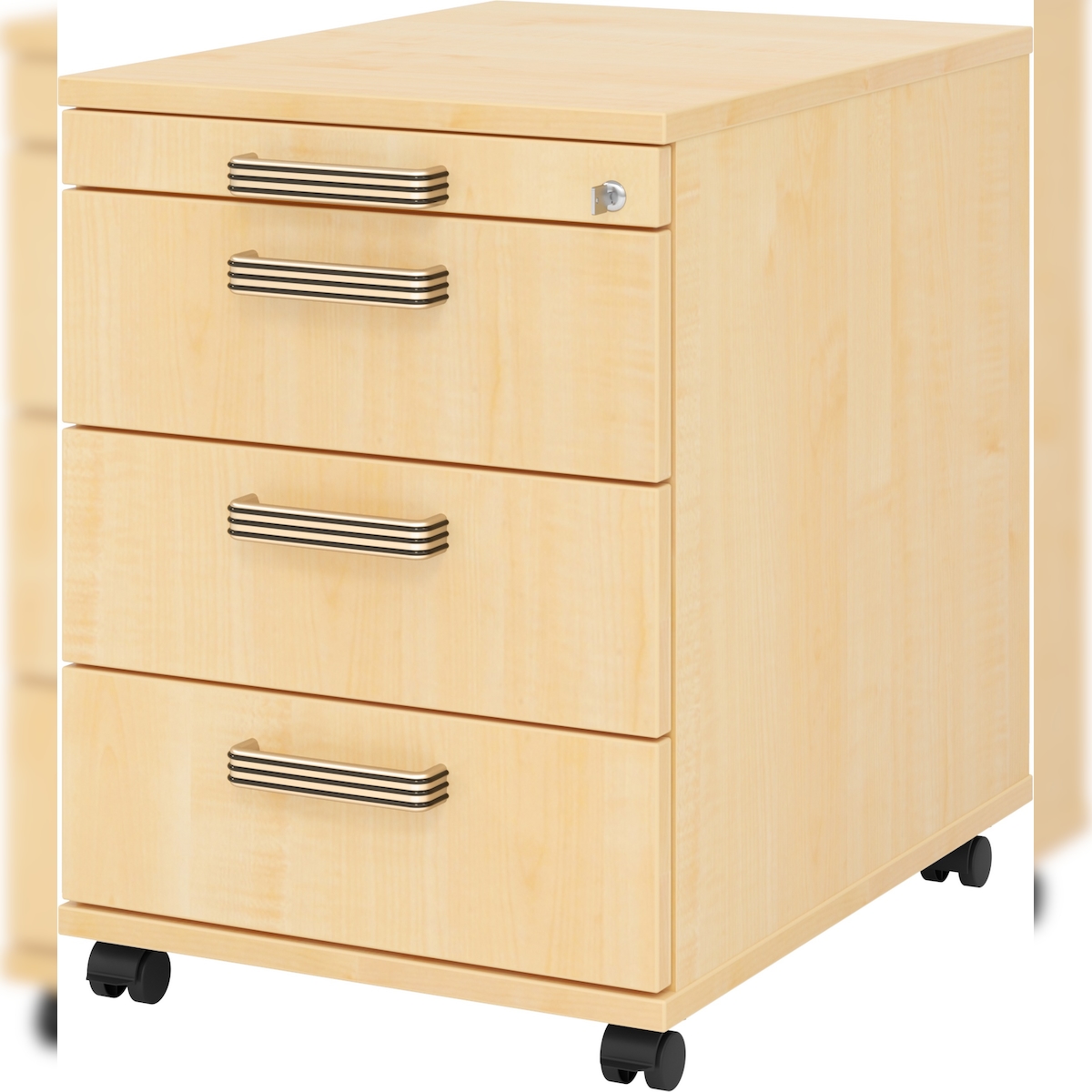 bümö Rollcontainer mit Schubladen, Container abschließbar aus Holz in Ahorn - Rollwagen für's Büro als Schreibtisch Unterschrank, Bürocontainer od.
