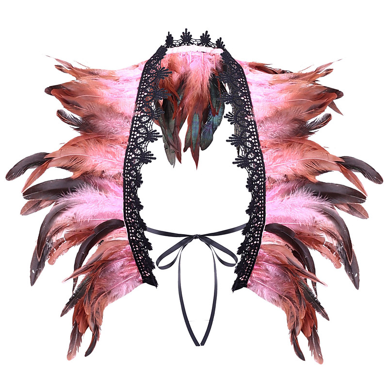 Carnival 2026Rio Carnival Samba Accessories Women's Red Black Feather Cape Shawl with Lace Trim Brazil Festival Performance Costume