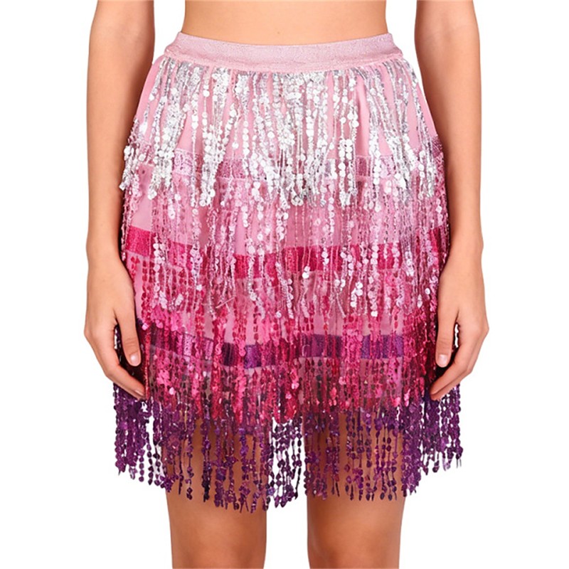 Carnival 2026Rio Carnival Samba Dancewear Sequin Skirt Fringe Hip Scarf Tassel Belly Dance Skirts for Women for Carnival, Festival, Party Brazil Festival Performance Costume