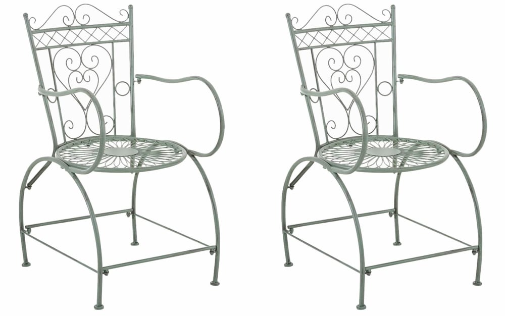 Set 2 sedie da esterno con braccioli in Metallo verde antico