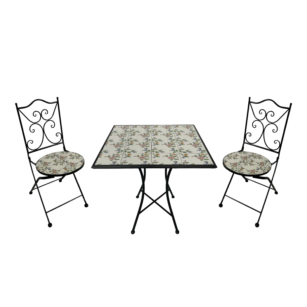 Tavolo da bistrot, 2 sedie, mosaico, disegno floreale
