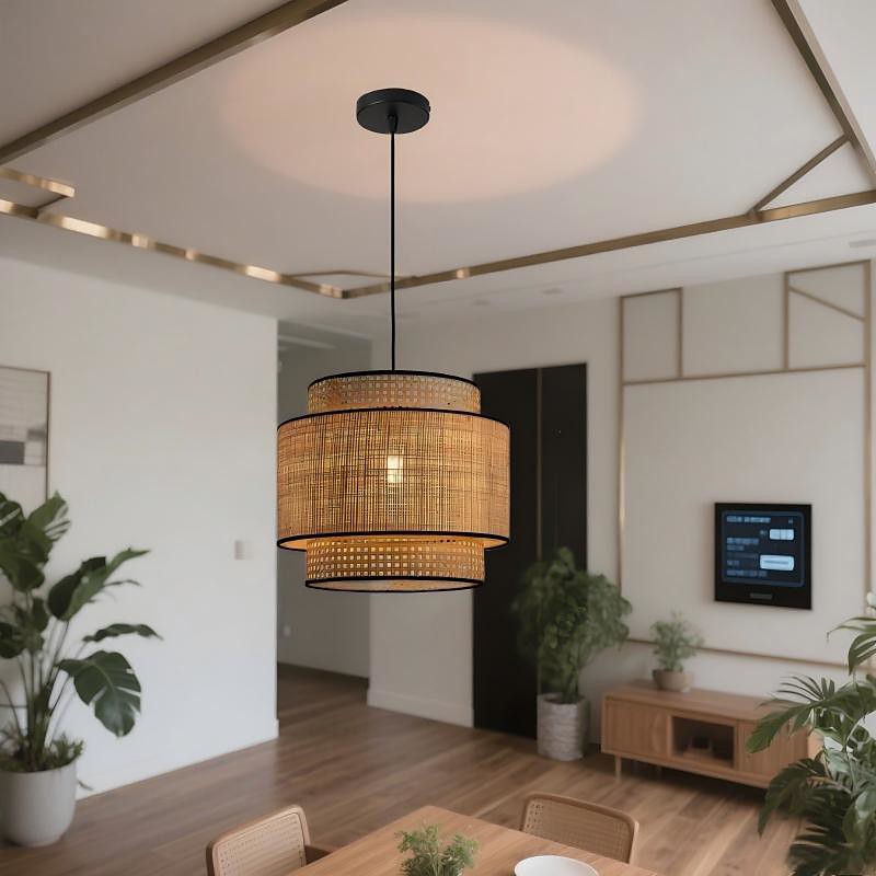 Vintage Pendant Light Scallop Style Dome Lampshade in Rattan Suspension Lighting Simplicity Chandelier Single Hanging Lamp Fixture Indoor Decoration