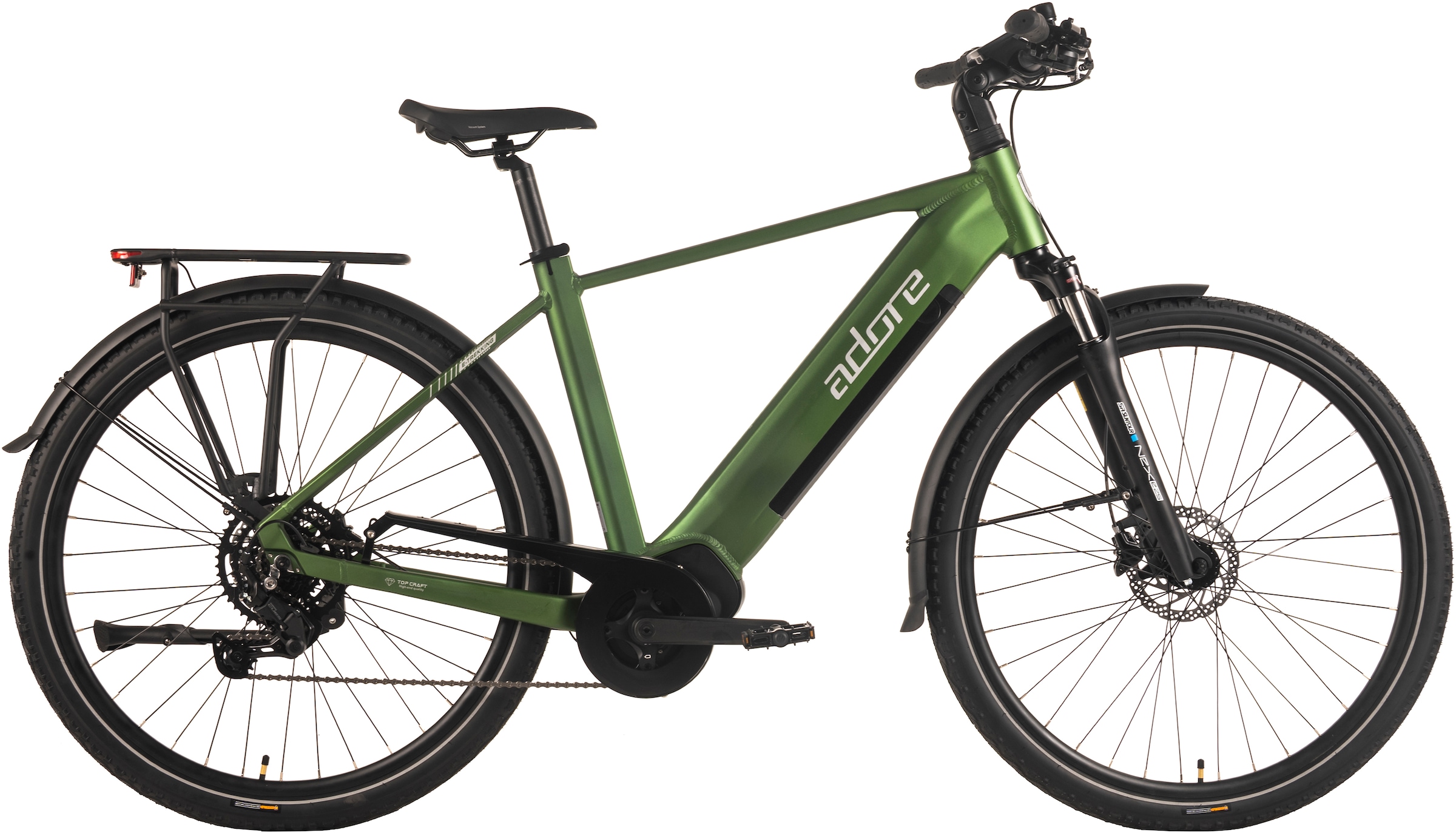 Adore "28" Alu Trekking E-Bike ATX-670 Mittelmotor 60NM / 15Ah Grün matt" 9 Gang Shimano Cues Schaltwerk Kettenschaltung Mittelmotor 250 W