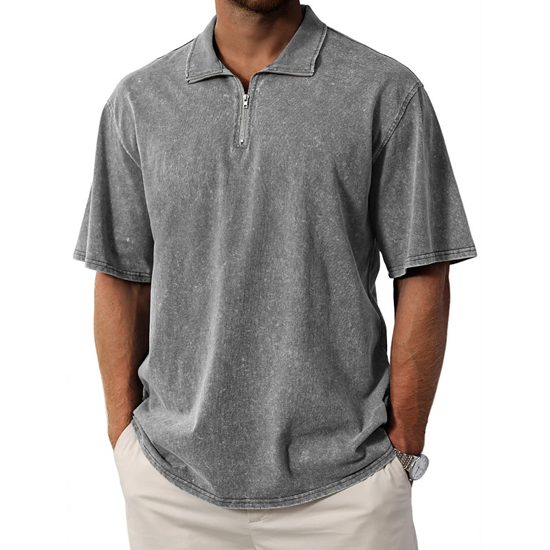Men's Zip Polo Golf Shirt Casual Holiday Zip Lapel Short Sleeve Fashion Basic Plain Vintage Style Quarter Zip Summer Spring Spring Summer Regular Fit Light Blue Army Green Black Pink Navy Blue