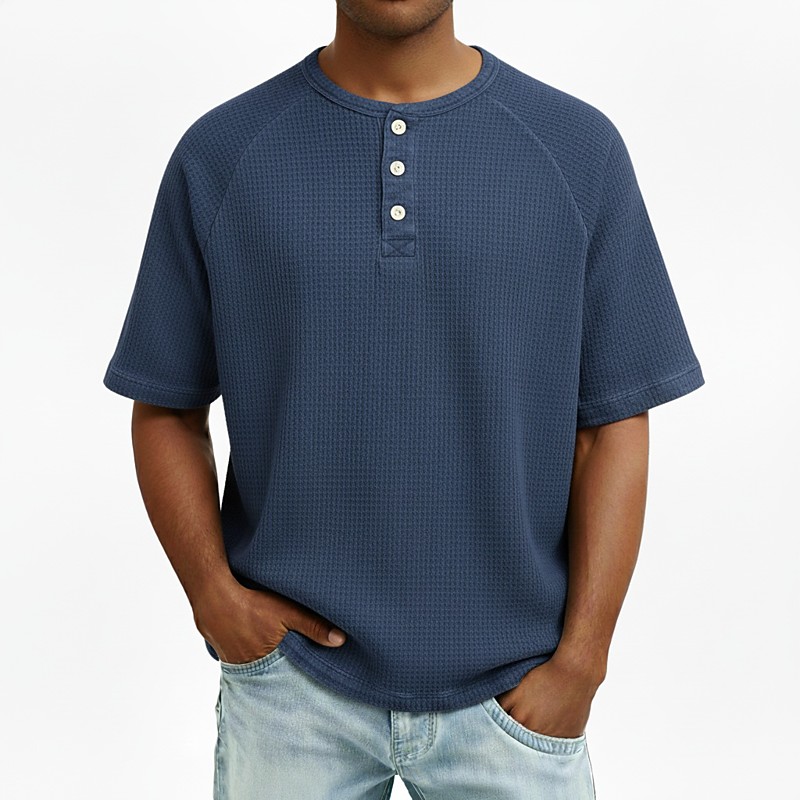 Men's Waffle Henley Shirt Tee Short Sleeve Solid Color Plain Textured Casual Buttons Raglan Sleeves Henley Casual Daily Outdoor Summer Spring Spring Fall Light Blue Navy Blue Green Henley T-Shirt