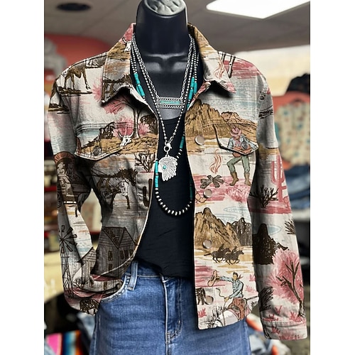 Damen Jacke Warm Leicht Knöpfe Druck Aktiv Vintage Künstlerisch Lässig Blumen Lässig Regulär Umlegekragen Normale Passform Langarm Oberbekleidung Blau Grün Beige Frühling Herbst