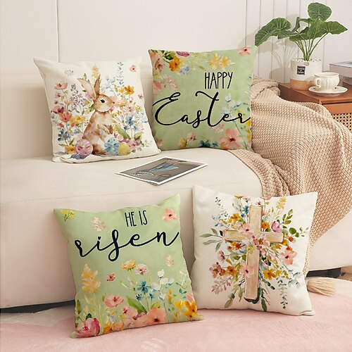 set di 4 federe per cuscini traspiranti in lino con stampa coniglietto pasquale, federe per cuscini decorativi primaverili per la casa, per divano