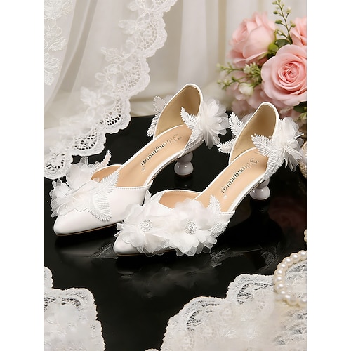 décolleté da donna con tacco basso e applicazioni floreali color avorio, eleganti e romantiche scarpe da sposa per matrimoni in città moderne